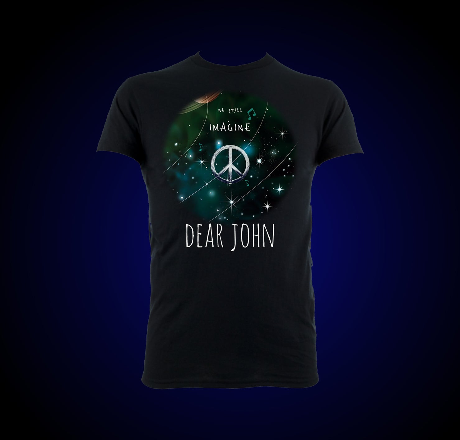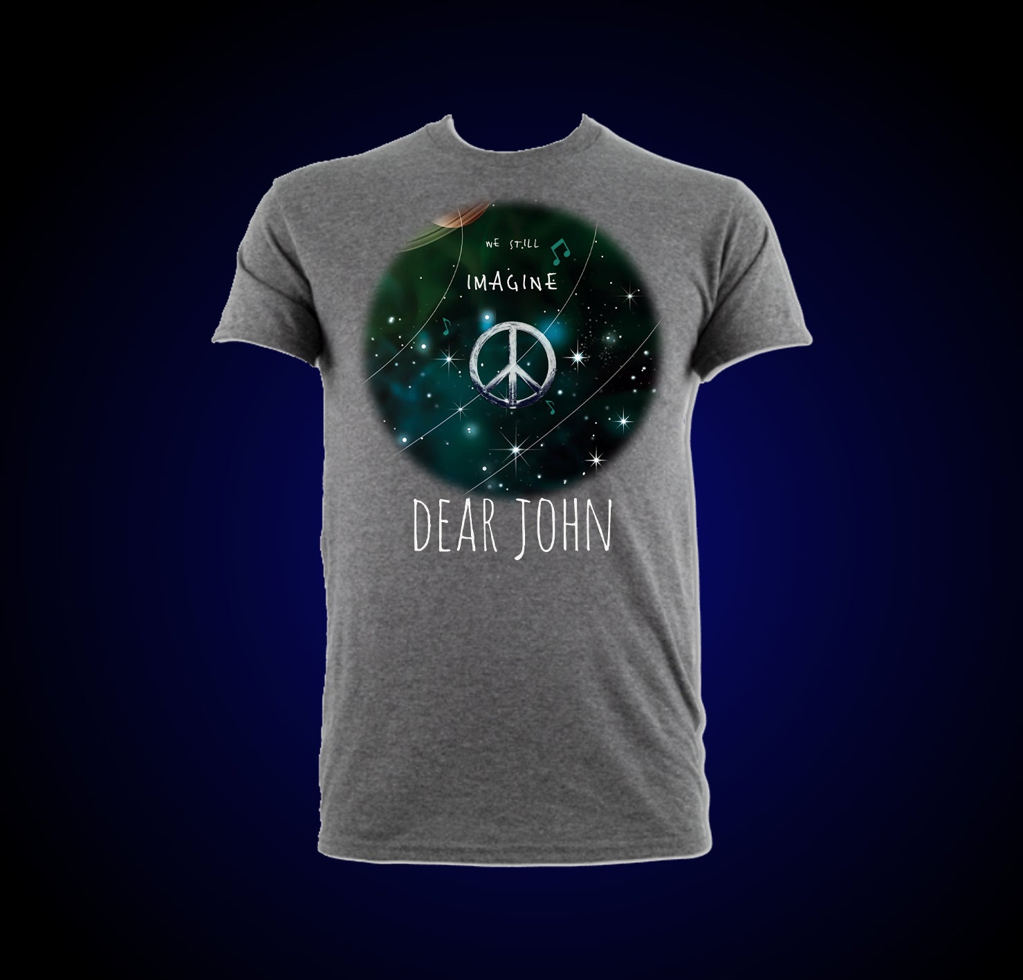 Newly designed, original "Dear John" Peace artwork T-Shirt in black or gray.